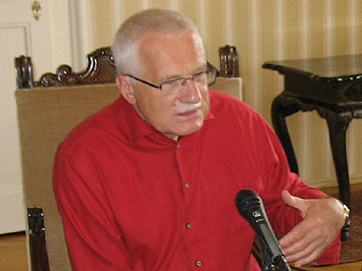 Pozornost se tedy pak už upírala jen prezidentovi. Ten se ke konfliktu vyjádřil nakonec až dnes, prostřednictvím e-mailových odpovědí na pár otázek internetového serveru IDnes a také v rozhvorou pro Rádio Česko. A kdo čekal, že se Václav Klaus vyjádří po svém a tudíž jinak, než západoevropští politikové nebyl překvapen. Český prezident totiž sice napsal, že ho znepokojuje masivní nasazení ruské armády, jenomže ještě před tím (cituji): "zásadně odsuzuje gruzínský útok na Jižní Osetii". A na dotaz, který ovšem zní, jako by si ho president vyžádal, totiž do jaké míry ovlivnil současnou situaci v Gruzii případ odtržení Kosova od Srbska, Klaus odpovídá (opět cituji): "Zásadně. Odtržením Kosova získalo Rusko silné ospravedlnění pro svou akci." (konec citátu).