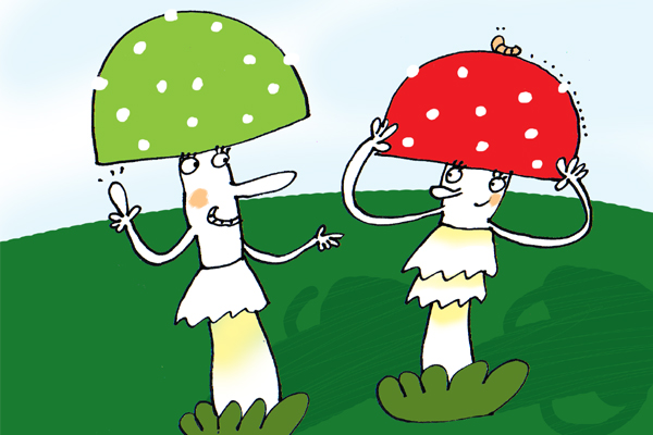 A teď nohy. Stoupněte si na špičky a na paty a zase na špičky… a ruce vytáhněte až úúúúplně ke stropu, jako byste se chtěli dotknout nebe. A teď si zaběhejte na místě! Jde nám to? Výborně – tak si to zopákneme a pustíme si k tomu Houbovou rozcvičku.