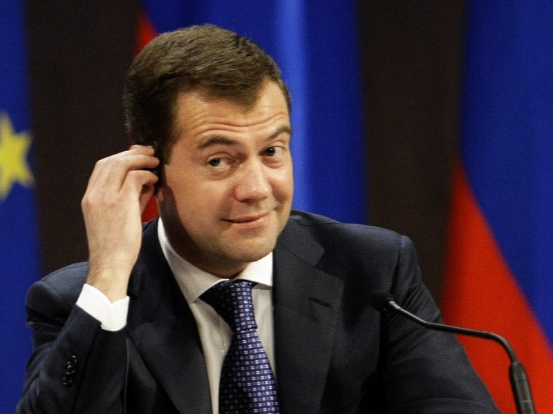 Nový ruský prezident, který je mnoha domácími i zahraničními politickými pozorovateli často označován za pouhou Putinovu loutku, se ve zmíněném interview mimo jiné nechal slyšet, že si nemyslí, že by země, v jejímž čele stojí, rozhodla pro nepsanou společenskou smlouvu, vyjádřitelnou poněkud obhroublým, ale dosti trefným úslovím "oželme svobodu za kus žvance". "V žádném případu nelze proti sobě stavět stabilní a blahobytný život a politická práva a svobody. Plné břicho nemůžeme považovat za protipól demokracie," řekl ruský prezident doslova.